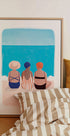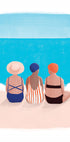Uma ilustração brilhante e feliz de três mulheres sentadas juntas à beira-mar, aproveitando o sol e a vista. Uma obra de arte perfeita para trazer uma sensação de férias, relaxamento e vibrações de verão da costa para sua casa.