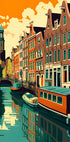 O Taudalpois Amsterdam Canal Houses captura o charme das estreitas casas triangulares da cidade ao longo do canal. Tons quentes de laranja se refletem na água, enquanto barcos e bicicletas sugerem um movimento tranquilo pelas ruas históricas. Um pôster de viagem nostálgico com clareza gráfica e toque vintage moderno. Perfeito para os amantes de Amsterdã e da poesia urbana nórdica.