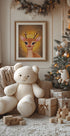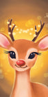 Um retrato de rena doce e aventureiro com uma corrente de luz cintilante nos chifres e um fundo dourado quente. A ilustração suave e o sorriso amigável tornam o motivo aconchegante e divertido. Ideal para decorações de Natal em casas que querem um pouco da magia do inverno na parede.