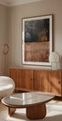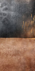 Uma obra de arte abstrata moderna com tons terrosos em marrom, laranja e cinza, combinados com uma superfície texturizada rústica. Os traços verticais dourados adicionam profundidade e contraste, criando uma expressão atemporal. Perfeito para interiores minimalistas, rústicos ou modernos que desejam aconchego e sofisticação.