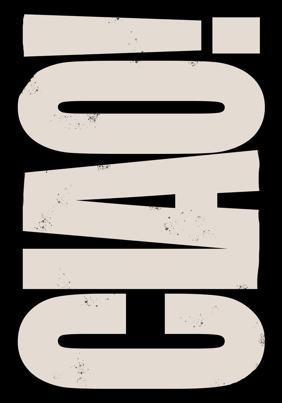 Um pôster marcante com tipografia vertical, destacando a palavra CIAO em letras grandes e em negrito sobre um fundo preto. Uma escolha moderna e elegante para a gráfica.