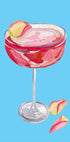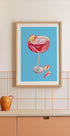 Esta obra de arte vibrante retrata um coquetel estilizado em um copo, decorado com pétalas rosa e amarelas, contra um fundo azul brilhante. As pinceladas fluidas da pintura criam uma expressão moderna e energética, perfeita para temas relacionados com bebidas ou arte contemporânea.