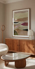 Hills de Dan Hobday é uma abstração calma e moderna: formas suaves e em camadas formam colinas em tons de ameixa, rosa e bege. Contornos simples e texturas sutis criam profundidade e equilíbrio, dando ao ambiente uma expressão poética e elegante - perfeito para uma decoração nórdica e minimalista. Cria calma e sofisticação em qualquer sala ou hall de entrada.