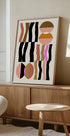 Esta obra de arte geométrica abstrata apresenta formas ousadas e tons terrosos contrastados com rosa e preto em um fundo branco puro. Inspirada na estética Bauhaus, a composição combina equilíbrio, ritmo e minimalismo moderno, criando uma peça marcante que eleva qualquer interior moderno.