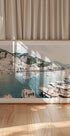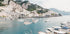 Uma fotografia deslumbrante da Costa Amalfitana, onde casas em tons pastéis se erguem acima das falésias e os barcos flutuam pacificamente nas águas azul-turquesa. A cena capta a essência do verão italiano – uma mistura harmoniosa de charme costeiro, arquitetura e tranquilidade do Mediterrâneo.