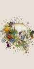 Uma obra de arte botânica surreal que combina um crânio humano com flores, folhas e borboletas desabrochando. Esta colagem imaginativa une a anatomia com a natureza e simboliza o ciclo de vida, morte e renascimento. Uma obra distinta e simbólica para interiores modernos.