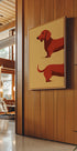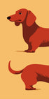Uma divertida ilustração minimalista de um dachshund, humoristicamente mostrado em duas partes separadas com o longo corpo esticado pela composição. Esta obra de arte moderna e distinta captura o charme do amado "cachorro-salsicha" e é perfeita para amantes de cães e interiores modernos.