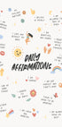 Um pôster positivo e edificante repleto de afirmações diárias e citações motivacionais. Com ilustrações divertidas e palavras encorajadoras, esta obra de arte é um lembrete de amor próprio, força e atenção plena. Perfeito para quartos, escritórios ou salas de terapia para espalhar positividade todos os dias.