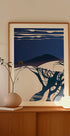 Uma noite tranquila de inverno se desenrola: árvores delgadas e nuas recortadas sombriamente contra um céu profundo e estrelado, enquanto uma grande lua surge acima de montanhas distantes. O minimalismo de inspiração japonesa encontra uma atmosfera sonhadora em um tema que equilibra calma, mistério e poesia cósmica - perfeito como um atrativo meditativo.