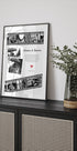 Uma colagem de fotos moderna e romântica para casais. O layout combina uma película de filme com imagens inclinadas inspiradas em Polaroid, detalhes de coração suave e tipografia elegante. Personalize com suas próprias fotos, nomes e uma data especial para criar uma lembrança atemporal para um aniversário, casamento ou Dia dos Namorados. A expressão pura em preto e branco confere um visual clássico e elegante, onde as memórias estão no centro.