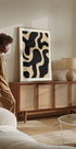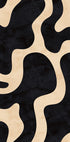 Uma obra de arte abstrata impressionante com formas pretas e orgânicas fluindo sobre um fundo bege quente. O design ondulado e fluido e a superfície texturizada proporcionam uma sensação moderna, mas terrosa - perfeita para interiores japoneses, escandinavos ou contemporâneos.
