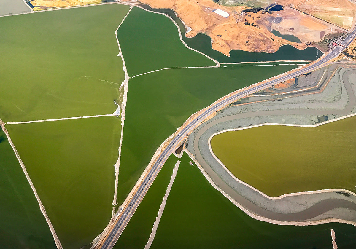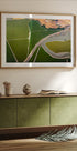 Uma impressionante fotografia aérea da paisagem da Baía de São Francisco, onde estradas sinuosas, riachos e campos verdes formam padrões geométricos distintos. Capturada de cima, esta obra de arte destaca a beleza dos limites da natureza e dos feitos pelo homem, tornando-a uma moderna arte fotográfica de parede.