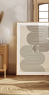 Uma obra de arte geométrica moderna com arcos entrelaçados em marrom terra e verde sálvia, com um círculo central adicionando equilíbrio e harmonia. O design de linhas limpas e a paleta suave criam uma atmosfera calma e estruturada – perfeita para interiores japoneses, escandinavos ou minimalistas.