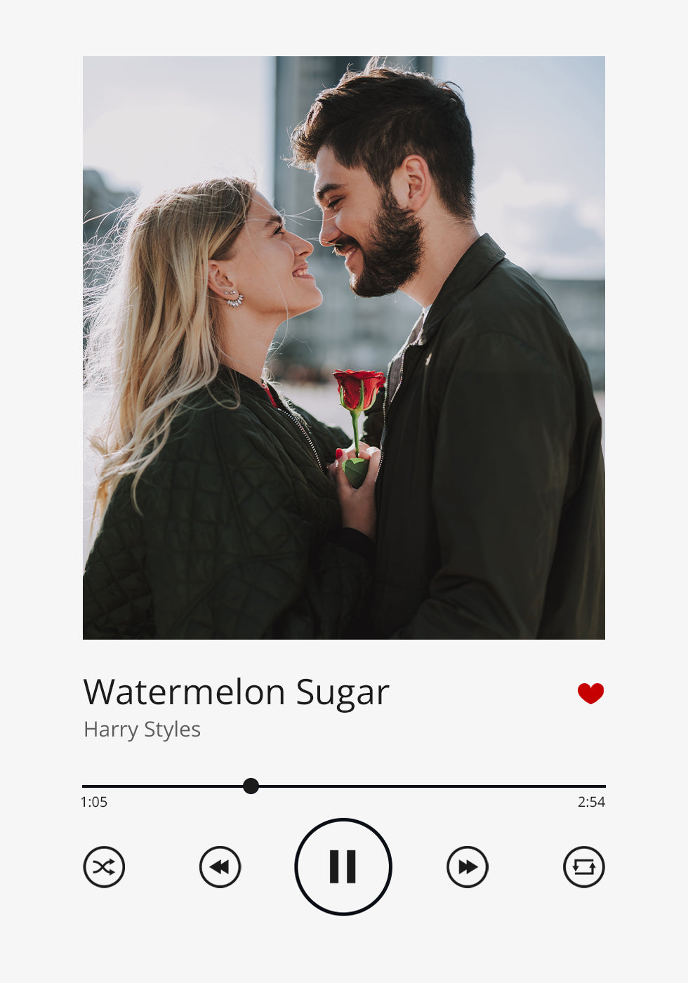 Um "poster musical pessoal" apresentando sua "música favorita e uma foto especial" em um elegante "design inspirado no Spotify". Esta "impressão musical personalizada" é uma forma única de preservar uma memória querida, perfeita como um "presente romântico, presente de aniversário ou decoração de casa". Crie uma "impressão musical pessoal" para celebrar o amor, a amizade ou um momento especial.