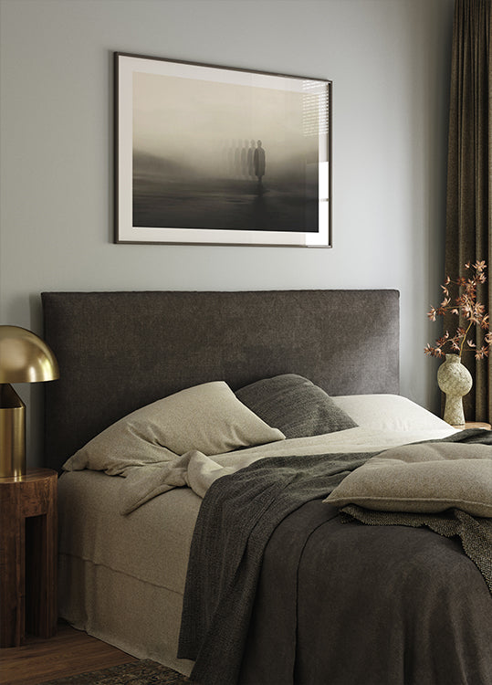 Um motivo poético e perturbador de uma figura masculina desaparecendo lentamente em um horizonte enevoado. A imagem oscila entre o real e o onírico, levantando questões sobre identidade e tempo.