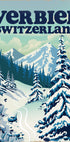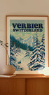 Uma homenagem estilizada a Verbier: picos alpinos cobertos de neve, florestas profundas de pinheiros e pistas sinuosas sob um céu gelado. Formas minimalistas e tipografia retrô enfatizam a vibração atemporal do esqui, enquanto tons suaves de azul-petróleo e verde encontram a neve branca para uma expressão gráfica e nostálgica. Perfeito para sonhos alpinos. Um motivo de viagem icônico.