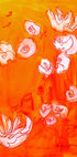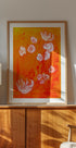 Uma obra de arte floral ousada e expressiva com pinceladas dinâmicas em tons quentes de ocre e laranja, acentuadas por delicadas flores brancas semelhantes a orquídeas. Inspirada em estilos expressionistas com um toque moderno, esta peça traz calor e energia tropical a qualquer espaço.