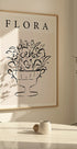 Um refinado desenho minimalista de um vaso cheio de flores, apresentado em um elegante estilo preto e branco. Combinando simplicidade com sofisticação, a obra funciona como uma estampa floral atemporal para interiores modernos e contemporâneos.