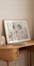 Uma delicada e suave impressão de arte botânica mostrando um elegante arranjo de flores secas e sementes em tons suaves e naturais. Os detalhes finos e a paleta de cores suaves proporcionam uma beleza calma e atemporal, tornando-a a escolha perfeita para quartos, salas de estar ou interiores inspirados na natureza.