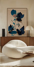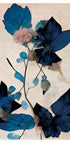 Uma refinada obra de arte botânica com finas flores secas e impressionantes folhas azuis sobre um fundo bege suave. O contraste entre os fortes tons de azul e o fundo suave cria uma expressão sofisticada e intemporal, ideal tanto para interiores modernos como clássicos.