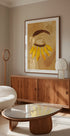 Uma impressionante obra de arte figurativa de um olho com longas pétalas amarelas como cílios, um símbolo de beleza, criatividade e conexão entre natureza e feminilidade. Esta ousada arte digital combina retratos com surrealismo floral.