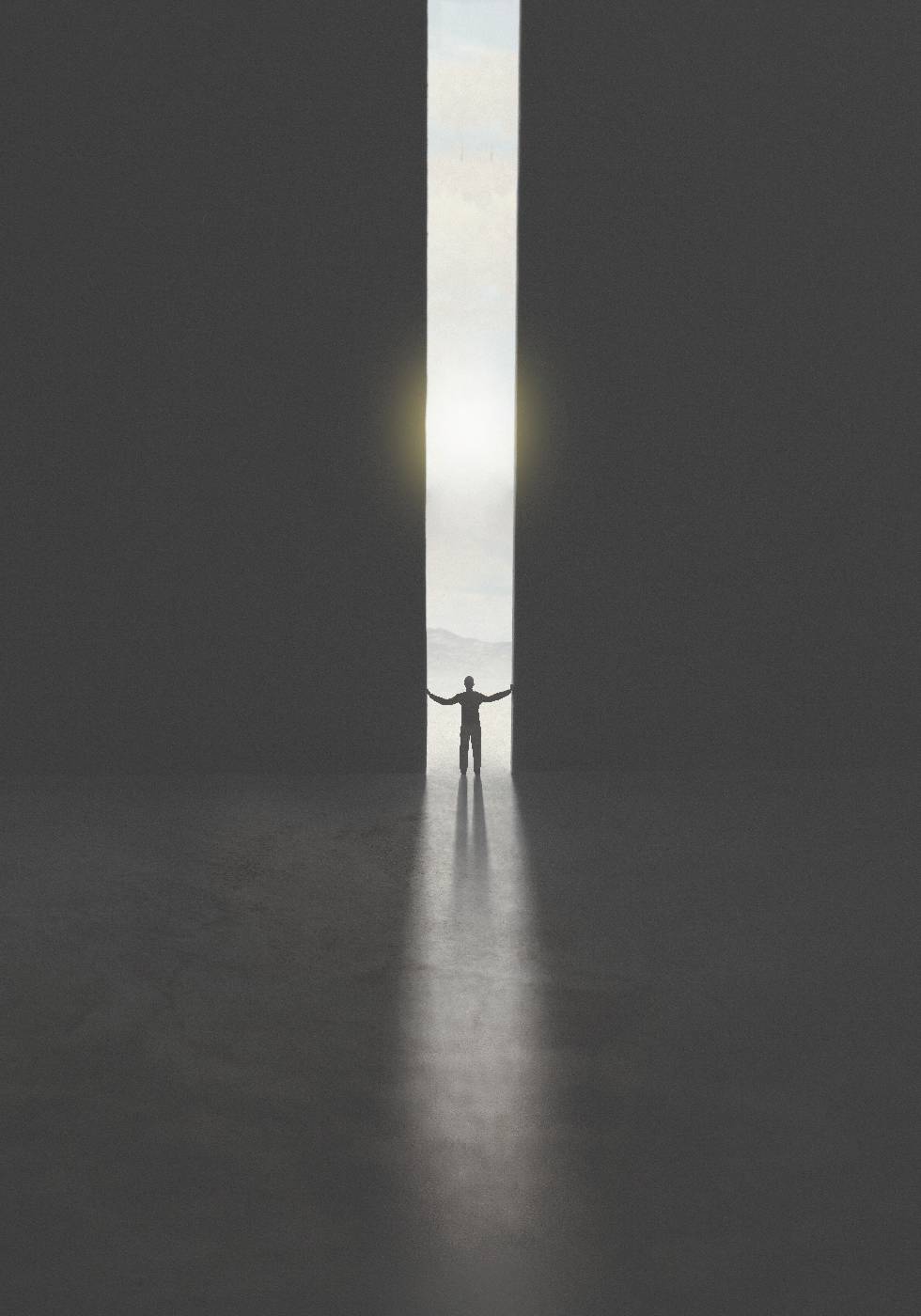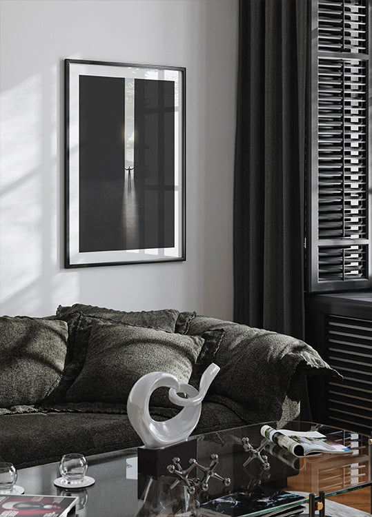 O pôster Out of Darkness* é uma obra de arte poderosamente surreal que simboliza força, esperança e novos começos. Uma pessoa solitária fica diante de uma porta gigantesca, afasta a escuridão e deixa entrar a luz. Esta imagem minimalista, mas poderosa, representa a superação de obstáculos, o desenvolvimento pessoal e o passo em direção a um futuro melhor. Perfeito para residências, escritórios, salas de terapia ou como um presente inspirador.