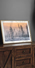 A manhã gelada de Sergey Pesterev captura a magia silenciosa do amanhecer: um campo coberto de gelo, uma leve névoa flutuando entre as árvores nuas e um sol baixo e dourado rompendo lentamente a névoa do inverno. Uma paisagem calma, onde o frio brilha na relva e a orla da floresta pede uma reflexão lenta. Perfeito para trazer a paz do inverno para dentro de casa.
