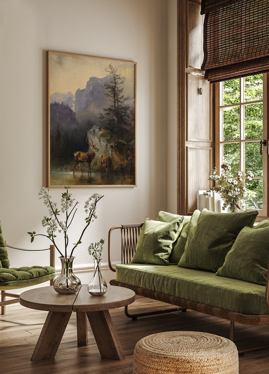 Pôster Hirsch e Tier An Der Tränke por Friedrich Gauermann