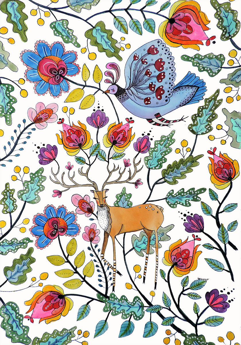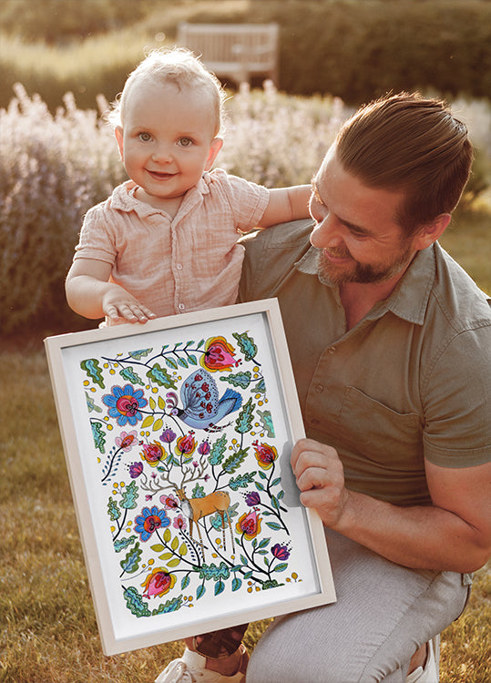O pôster Il Etait Une Fois (em francês para "Era uma vez") é uma obra de arte imaginativa e encantadora que transporta o espectador para um mundo mágico de conto de fadas. Um gracioso veado com chifres florescendo fica entre flores vibrantes, enquanto um pássaro azul lindamente estampado desliza pela cena. Rica em detalhes e repleta de cores vibrantes – rosa, amarelo, azul e verde – esta obra exala alegria e admiração. Perfeito para quartos de crianças, estúdios criativos ou qualquer espaço que celebre a imaginação e a natureza, captura a imaginação com o seu encanto lúdico inspirado nos livros de histórias.
