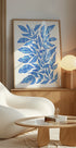 Uma delicada estampa botânica com folhas azuis pintadas à mão sobre fundo branco. O estilo aquarela combina minimalismo com elegância, tornando-o uma escolha versátil para interiores modernos. Perfeito para adicionar um toque fresco e natural a qualquer ambiente.