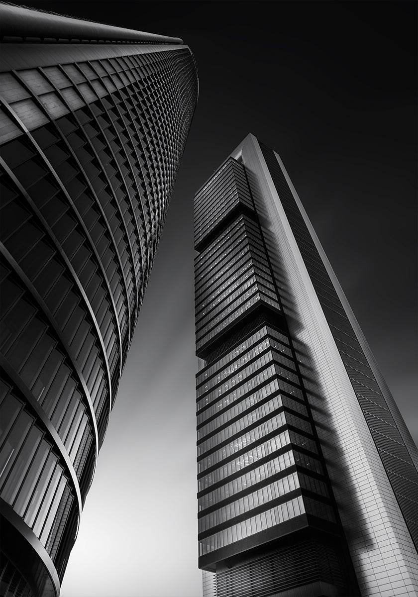 Juntos, de Jorge Ruiz Dueso, captura uma cena noturna de Madri, onde a lua paira sobre o horizonte da cidade. Vistos em uma perspectiva dramática, dois edifícios modernos estendem-se em direção ao céu, suas linhas limpas e ritmo geométrico criando calma e emoção ao mesmo tempo. Perfeito para os amantes da arquitetura e da vida noturna espanhola.