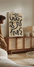 Um impressionante pôster de arte abstrata com traços pretos ousados serpenteando sobre um fundo texturizado bege. A expressão moderna e minimalista combina simplicidade com movimento, ideal para interiores contemporâneos, boho ou escandinavos.