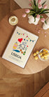 Vá até Lisboa com este cartaz poético de Elizabeth C: um eléctrico dourado serpenteia pelas colinas, sob a icónica Ponte 25 de Abril, rodeado de azulejos azuis, andorinhas e sardinhas. Linhas ingênuas e minimalistas e cores ensolaradas capturam a leveza da cidade, a brisa do mar e o desejo de viajar. Uma lembrança moderna para casa.
