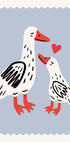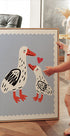 Uma ilustração doce e comovente de uma mãe pata e seu patinho compartilhando um momento de ternura, destacada por um pequeno coração vermelho. O fundo pastel suave e o estilo de desenho divertido criam uma vibração calorosa e amorosa - perfeito para quartos infantis, berçários ou espaços que celebram o amor e a conexão.