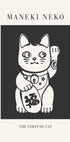 Pôster do gato sortudo de Maneki Neko – edição escura tem um fundo preto profundo que destaca o charme da icônica ilustração do gato da sorte japonês. Este design moderno e monocromático combina simbolismo cultural com contraste visual impressionante, tornando-o uma escolha elegante para interiores minimalistas e ecléticos. Associada à prosperidade, sorte e proteção, esta peça é perfeita para residências, escritórios ou como um presente significativo para quem ama a tradição japonesa.
