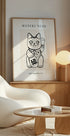 Poster Gato afortunado de Maneki Neko apresenta um desenho minimalista do icônico gato japonês da sorte, conhecido por trazer boa sorte e prosperidade. Apresentando uma ilustração preta limpa sobre um fundo suave e neutro, esta peça combina simbolismo cultural com simplicidade moderna. Perfeito para adicionar um toque de charme e positividade a salas de estar, escritórios ou como um presente atencioso para os amantes da cultura japonesa e amuletos da sorte.