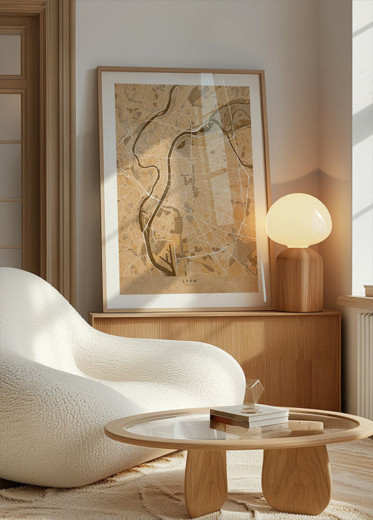Mapa vintage sépia de Lyon França por Rosana Laiz Blursbyai - Papel de qualidade premium com superfície lisa fosca e toque elegante. O acabamento fosco reduz o brilho e proporciona uma aparência refinada e atemporal. Forte e durável para uso duradouro, ideal tanto para ambientes profissionais quanto para displays decorativos.