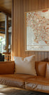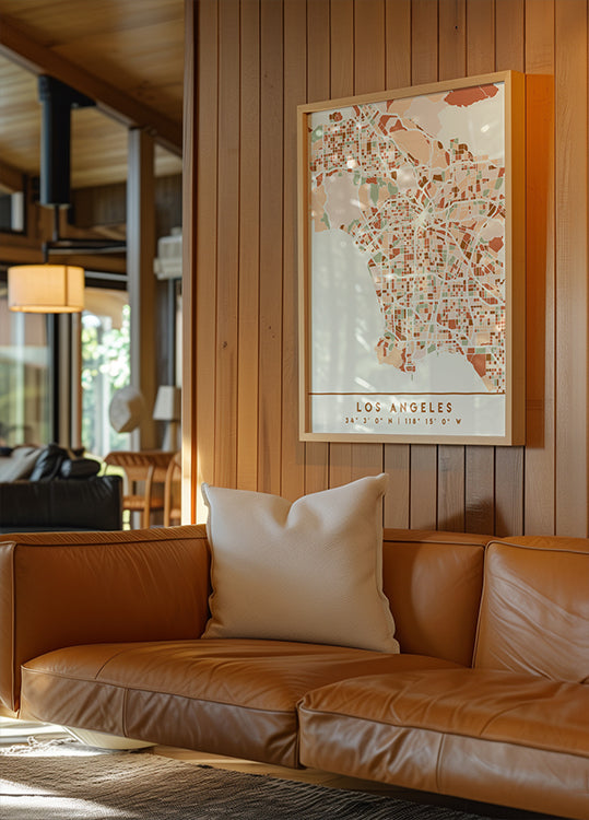 Black Maps Earth Tones 42 de Emiliano Deificus mostra um mapa estilizado de Los Angeles em tons terrosos profundos. Ruas de malha fina, colinas de Hollywood e os contornos da costa formam um padrão gráfico elegante que captura o ritmo da cidade grande e se destaca tanto em espaços modernos quanto clássicos. Pendure-o sozinho ou na parede de uma galeria.