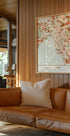 Um evocativo pôster do mapa da cidade de Melbourne, de Emiliano Deificus. As superfícies escuras e pretas encontram tons quentes de terra, onde ruas, bairros e litoral emergem como linhas e campos elegantes. Um atrativo urbano e elegante que capta o ritmo da cidade grande e convida você a fazer descobertas diárias. Perfeito para sala de estar, escritório ou escritório.