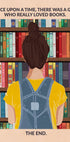 Um charmoso pôster ilustrativo de uma garota em frente a uma estante colorida, celebrando seu amor pelos livros. A tipografia lúdica diz "Era uma vez uma garota que adorava livros. Fim." Presente perfeito para os amantes dos livros e um detalhe inspirador para bibliotecas, recantos de leitura e casas acolhedoras.