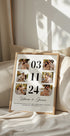 Um lindo poster de bebê personalizado comemorando o primeiro ano de vida do seu filho. Esta impressão de colagem de fotos captura doze memórias preciosas, desde momentos do recém-nascido até os primeiros marcos. Uma lembrança atemporal e o presente perfeito para pais, avós ou decoração de berçário.