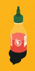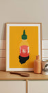 Uma ilustração ousada e moderna de uma garrafa de molho de pimenta em um fundo amarelo vibrante. Minimalista, mas atraente – esta arte gráfica traz uma energia divertida de pop art para cozinhas, salas de jantar ou interiores modernos, fazendo uma declaração divertida para os entusiastas da comida e do design.