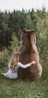 Entre em uma floresta de conto de fadas onde uma jovem se aninha no pêlo grosso de um gentil urso marrom, com os olhos fechados em confiança e calma. Fotografado pela artista Olga Barantseva, este retrato de sonho celebra a ternura, a proteção e a magia silenciosa da amizade entre o humano e o selvagem. Um terno dueto de coragem e cuidado, perfeito para sonhadores e românticos.