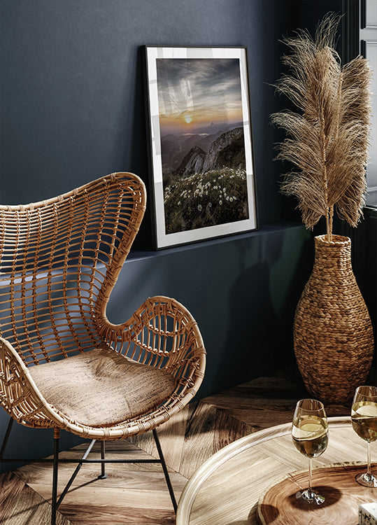 Pôster Nascer do Sol sobre Flores Silvestres da Montanha