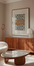 Pattern in Contrast do THE MIUUS STUDIO combina linhas justas, grades e listras rítmicas com formas suaves e orgânicas. Em tons neutros de bege, preto e marrom, a composição cria uma expressão gráfica calma com profundidade e contraste claros - ideal para uma decoração minimalista, moderna e de inspiração de meados do século.