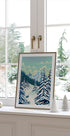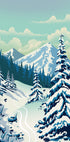 Um pôster de inverno atemporal de Nicholas: tons suaves de azul, sol sobre picos nevados e uma serena floresta de abetos. As formas suaves e os detalhes de inspiração retrô criam uma atmosfera calma de esqui - perfeita para aqueles que sonham com neve recém-poeira, céu limpo e trilhas tranquilas nas montanhas. Inspirado em pôsteres clássicos de viagens e no amor pelas montanhas.