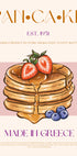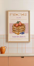 Um poster encantador em estilo vintage com uma pilha de panquecas fofas cobertas com morangos, mirtilos e calda dourada. Projetada com tipografia retrô e cores pastel, esta obra combina nostalgia gastronômica com decoração elegante, perfeita para cozinhas, cafés ou amantes do café da manhã.