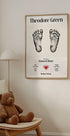 Um pôster personalizado atemporal e elegante com pegadas de bebê e detalhes personalizados de nascimento, incluindo nome, data, hora, peso, altura e local de nascimento. O design minimalista limpo com um fundo neutro suave torna-o uma lembrança perfeita para os novos pais e uma bela adição a qualquer berçário ou parede familiar.