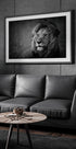 Regal, de Mohammed Alnaser, captura o rei da savana em um dramático preto e branco. Um leão majestoso sai da escuridão, o vento levanta a crina e o olhar é focado e digno. A iluminação discreta e a vinheta discreta criam profundidade e calma – um retrato icônico e poderoso para paredes com personalidade. Perfeito para sala de estar, escritório ou espaço criativo.