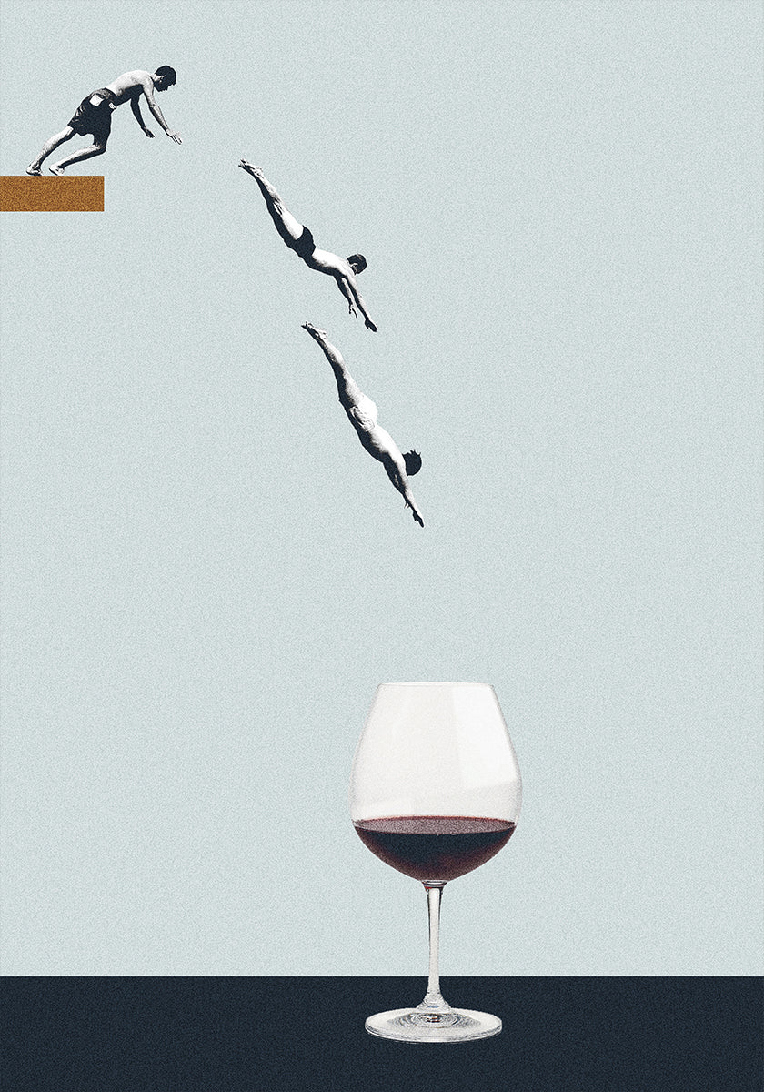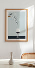 Uma impressão artística espirituosa e minimalista que mostra um mergulho perfeito - direto em uma taça de vinho tinto. Com seu conceito lúdico e composição clean, essa peça cabe perfeitamente em cozinhas, salas de jantar ou qualquer espaço que abraça o humor com um toque de sofisticação. Um divertido começo de conversa para amantes do vinho e entusiastas do design.
